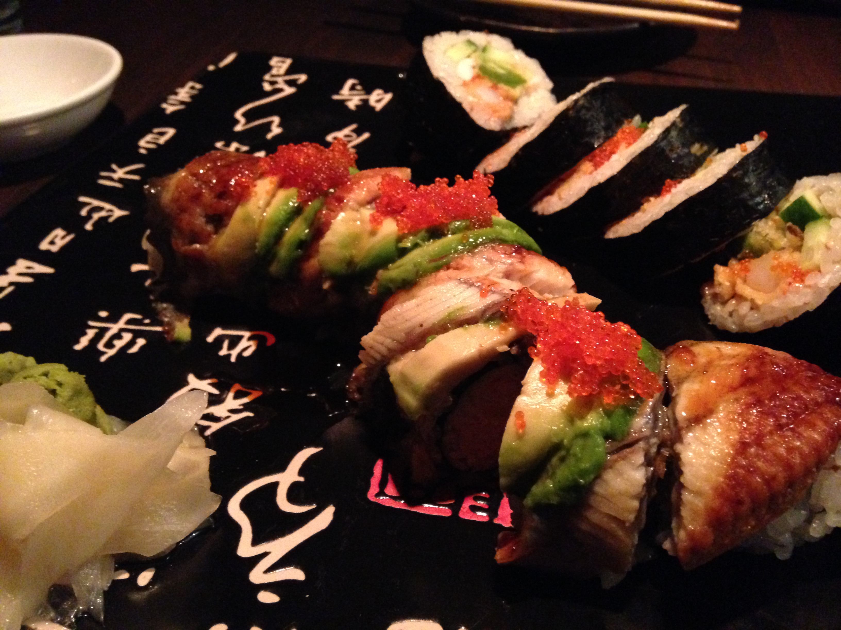Another hot spot we tried was Ryoko's near Union Square. It's located in the basement and features a casual, club-like atmosphere with a live DJ. They're famous for their inventive rolls such as the Volcano Roll, made with tempura shrimp, jalapeño, and peanut butter (far right roll). It was definitely unique but we're not sure if it was worth the 45 minute wait (people we're still lined up out the door at 11:00pm!) or the prices. Then again where else can you get sushi until 1:30 in the morning?