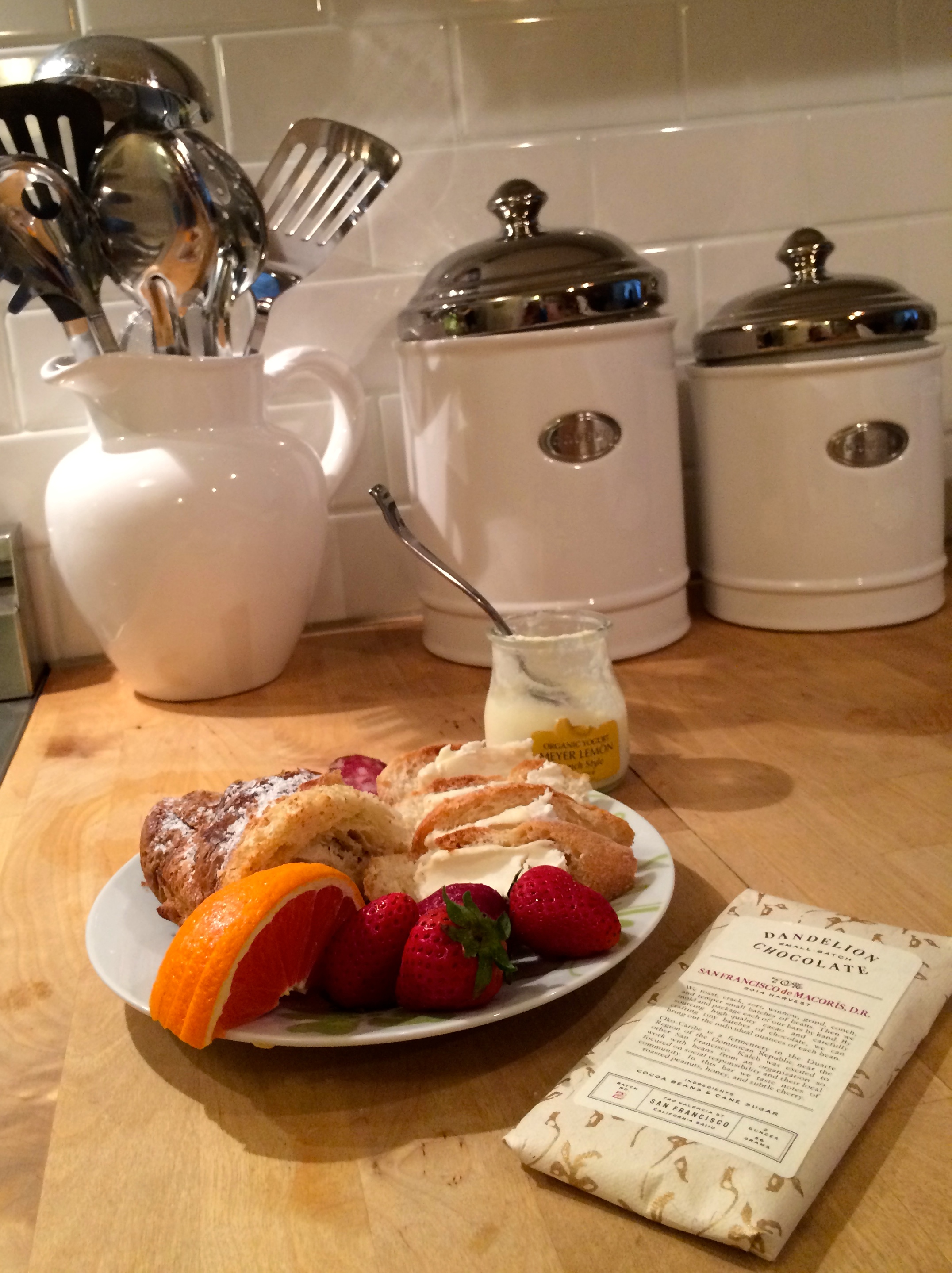 When Elliott learned he had to be in San Francisco on business two weeks in a row, it seemed like the perfect excuse to tag along and make our requisite 9:45 reservation at Rich Table (we don't have photos this time, but the hamachi appetizer was amazing!). We started our week in a charming airbnb in the Castro and since it was a beautiful day, we trekked up through Haight-Ashbury to Golden Gate Park. San Francisco is a very walkable city which explains the surprisingly patient drivers at crosswalks and bakeries at every corner. On our first day in town, we happened to walk into Bi-Rite, an unassuming market that is a foodie's treasure chest. We chatted with a friendly cheese gal and walked away with a small disk of Zingerman's -- some of the best goat cheese we've ever tried. Combined with salami, cara cara oranges, meyer lemon yogurt, and a frangipani croissant from Tartine Bakery, we could see this neighborhood was very dangerous for our waistlines, hills or not.