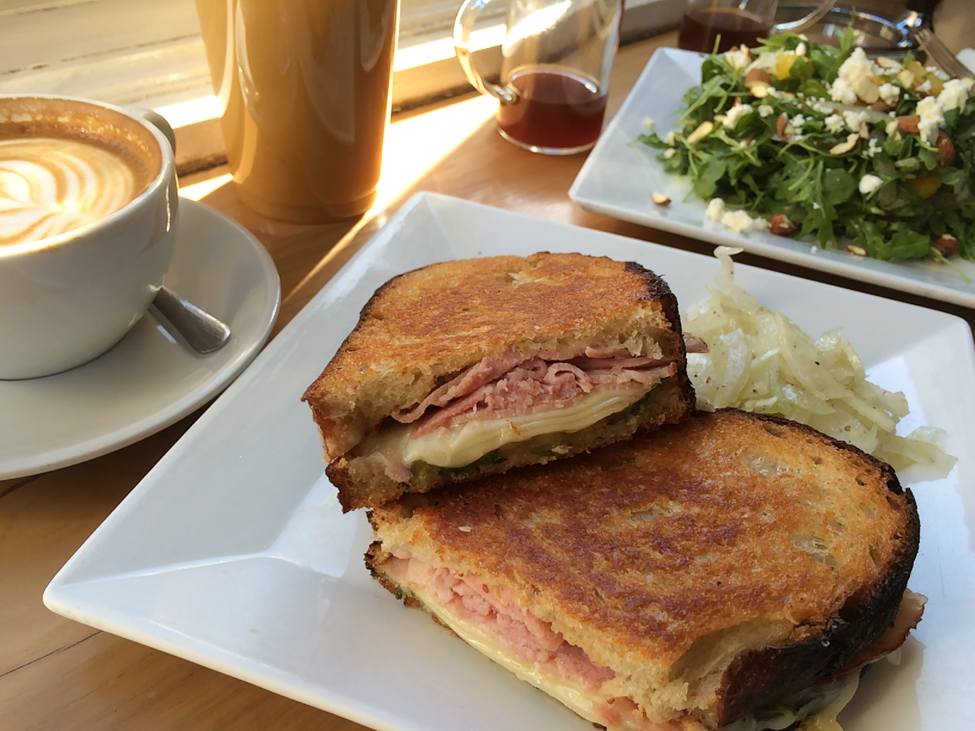 Later in the week, we settled into new digs near Union Square and checked out the much-hyped Blue Bottle Coffee Company for breakfast. After a short line, we ordered two coffees, a cubano sandwich with cilantro (wow!), and an arugula salad with shaved fennel and an orange vinaigrette. It was so good, we came back the next morning and ordered the same thing.