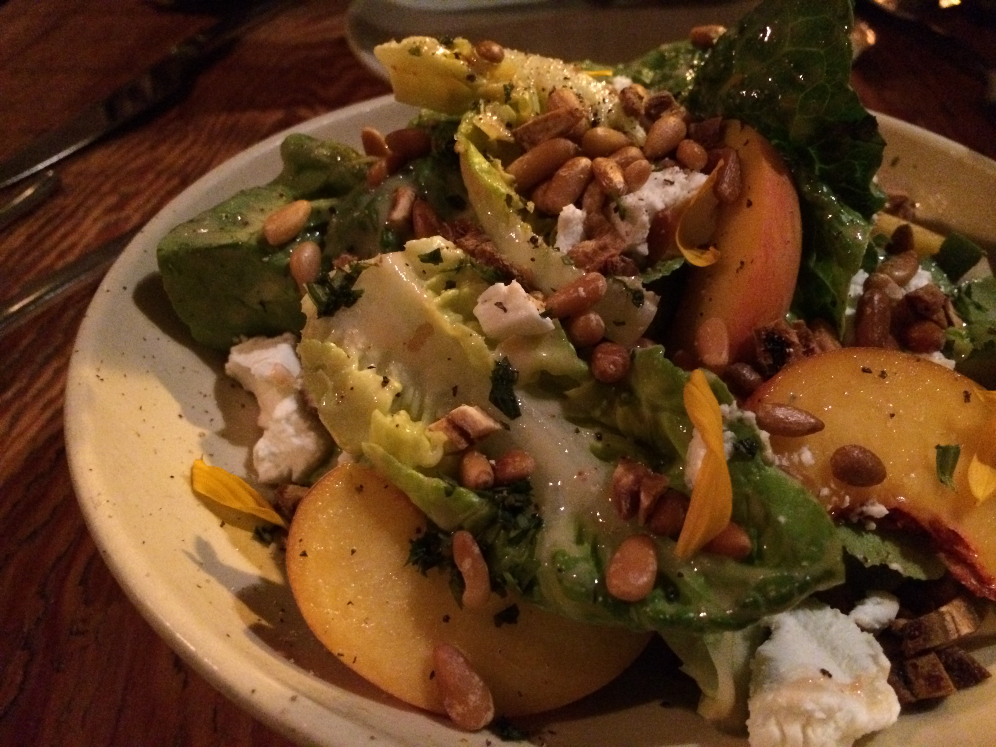 Gem Lettuce with Peach Buttermilk Dressing, Pine Nuts, and Chèvre.[/caption] [caption id="attachment_2157" align="aligncenter" width="750"]