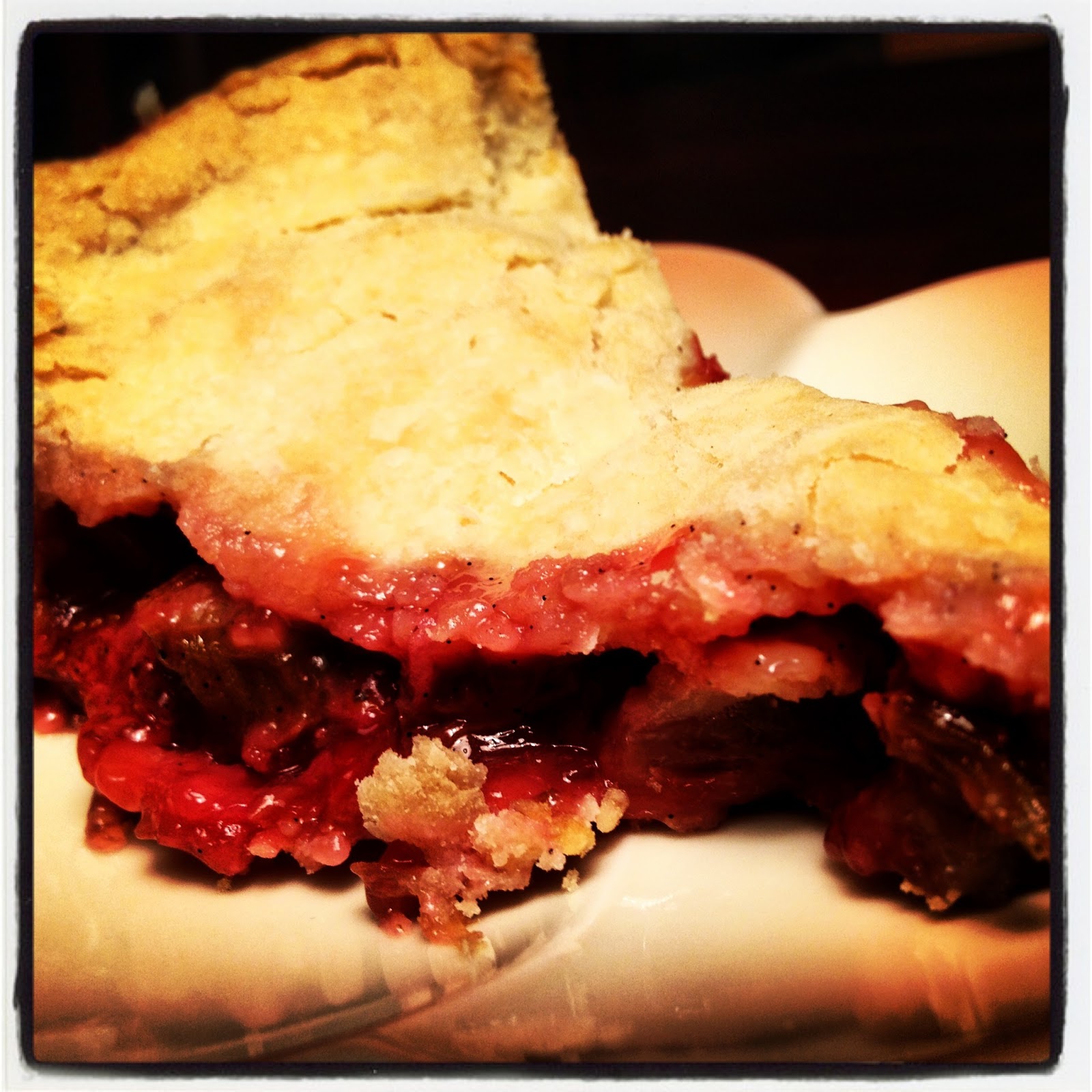 We got off the island, as we say here in West Seattle, and headed to Kent, WA last Saturday for a early Father’s Day brunch with Elliott’s family. His aunt and uncle have a great piece of property that is surrounded by rolling green hills, picket fences, and some neighboring horses. After a tasty meal and a tour of the garden, we headed back to the city life with two bags of fresh kale, chard, and rhubarb. Since we are currently addicted to strawberries, we thought what better use for the rhubarb than to mix them together and stick it all in a buttery, flakey pie crust? Ingredients: Pie Crust: 1/2 cup butter 1/2 cup shortening 2 1/2 cups flour 1 tsp. sugar pinch of salt 5 tbsp. ice water Filling: 3 cups of strawberries, quartered 4 stalks rhubarb, 1/2” slices 1 cup organic sugar 3 tbsp. quick set tapioca Fresh vanilla bean Orange zest
