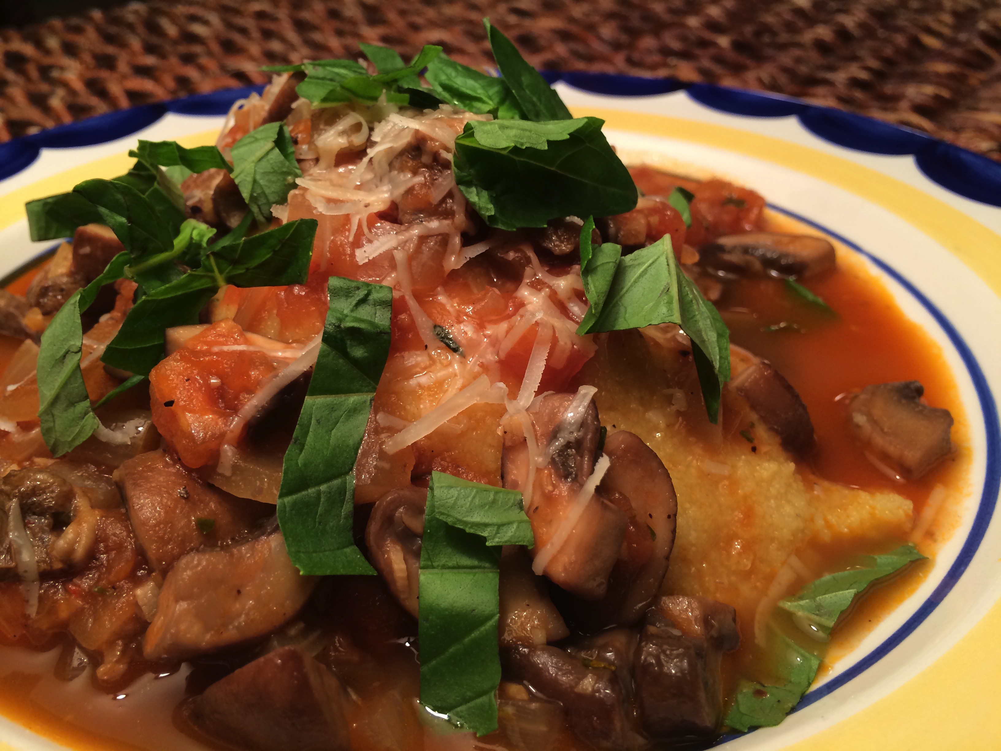 Ever since high school, I've dreamed about the mushroom and polenta dish my mom's Italian boyfriend, Mario, used to make. It was unlike anything I'd tried before and most likely played a part in my decision to head to Italy for my junior year abroad. When I called Mario to ask where he got the recipe, he unfortunately couldn't remember, but it likely came from someone in his family. His mother Rosa is Sicilian, but his Aunt Bianca, from Trieste, was apparently the better cook. Considering I've tried Rosa's cooking and it was delicious each time, that's pretty hard to believe. During our conversation, Mario mentioned that he didn't begin cooking until he moved to the United States. When asked why not, he replied that in Italy most men never saw the inside of a kitchen. Boy am I lucky that's not the case in this house! :-) Mille grazie Mario for a delicious recipe! Ingredients: 1 1/2 cups beef or veggie stock 1/4 cup dried porcini mushrooms 1 1/2 lbs. crimini mushrooms, sliced 1 large onion, diced 2 cups roma tomatoes, peeled and diced 2/3 cup dry white wine 3 cloves garlic, minced 1 tsp. fresh oregano 1 1/2 - 2 tbsp. fresh rosemary Dash of red pepper flakes Fresh basil Salt and pepper Fresh parmesan, grated Polenta (plus stock and parmesan per instructions) Cover the dried mushrooms with warm stock and let sit for 15 minutes. Strain the stock and rinse mushroom clean. Chop and set aside. Meanwhile, sauté the chopped onion in olive oil until translucent. Add the garlic and stir for a few minutes more. Add the tomatoes and cook on the highest heat until the tomatoes release their juices. Add the herbs and remove from heat. In another pan, sauté the mushrooms in butter and olive oil until golden brown. Add in the chopped porcini mushrooms and remove from heat. Add the wine to the tomato sauce and cook for 15 minutes. Add the stock and mushroom mixture and cook on low for 40-45 minutes. For the polenta, be sure to get the type you cook yourself as it's super easy and the pre-made stuff just doesn't cut it. The polenta is ready in just a few minutes and depending on your mood, you can serve it slightly creamy, in thick slices, or in cookie cutter shapes. The world is your polenta.