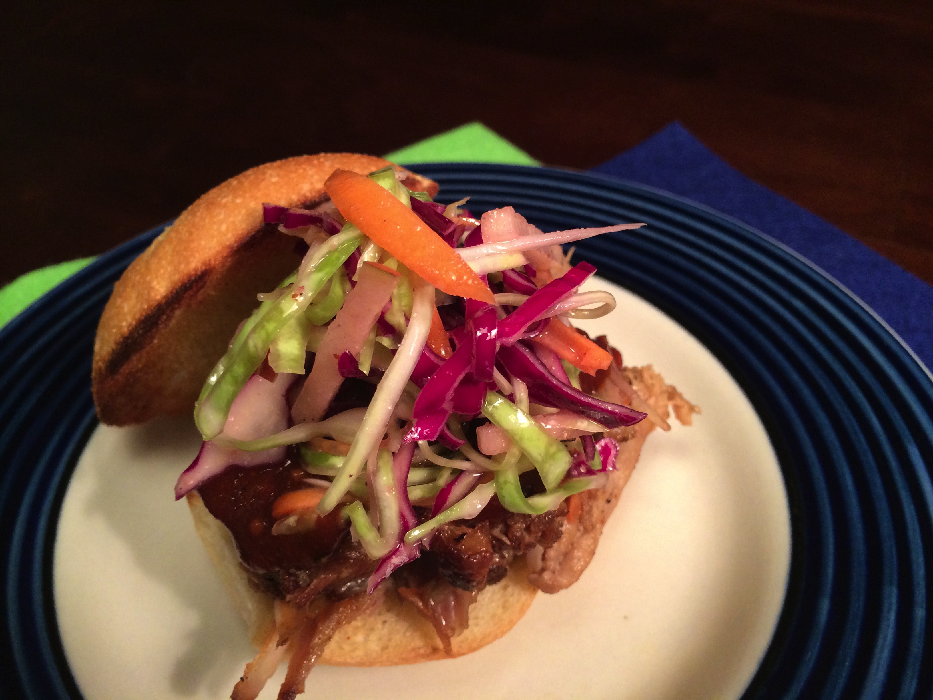 Beast Mode Pork Sliders 4 lbs. pork shoulder 22 oz. Seattle dark ale (with little to no hops) 1 medium onion, chopped 5 cloves garlic, minced 1 habañero pepper Mini brioche buns BBQ sauce Spice Rub 2 tbs. salt 2 tsp. garlic powder 1 tbsp. chili powder 1/2 tsp. cayenne 1 tsp. paprika 1 tsp. black pepper 1/4 tsp. coriander Slaw 1/2 head of green cabbage, shredded 1/2 head of red cabbage, shredded 1/2 carrot, jullienned 1 fuji apple, matchsticks 1-2 green onions, sliced 1/4 cup olive oil 2 tbsp. apple cider vinegar 2 tbsp. stone ground mustard Salt and Pepper, to taste Heat a dutch oven on medium-high and add 1 tbsp. vegetable oil. Rub pork shoulder with all of your spice rub and sear until browned on all sides. Remove from the heat and add your onions and thinly sliced habañero, and sauté until transluscent. Add the garlic and stir constantly until lightly browned. Add the beer and bring to a boil. Add the meat back into the pan and place in a 280˚ oven for 3 hours. You'll know it's done when the pork is falling apart. Top the brioche buns with some of the shedded pork, some slaw, and a spoonful of BBQ sauce. Once you start chomping on these, you won't be able to stop! P.S. If you're short on time, here's another quick appetizer idea... 12th Man 12 Layer Dip Refried beans Black beans Jalapenos Olives Red salsa Sour cream Fresh tomatoes Salsa Verde Lettuce Guacamole Cheddar cheese Pepperjack cheese Go Hawks!