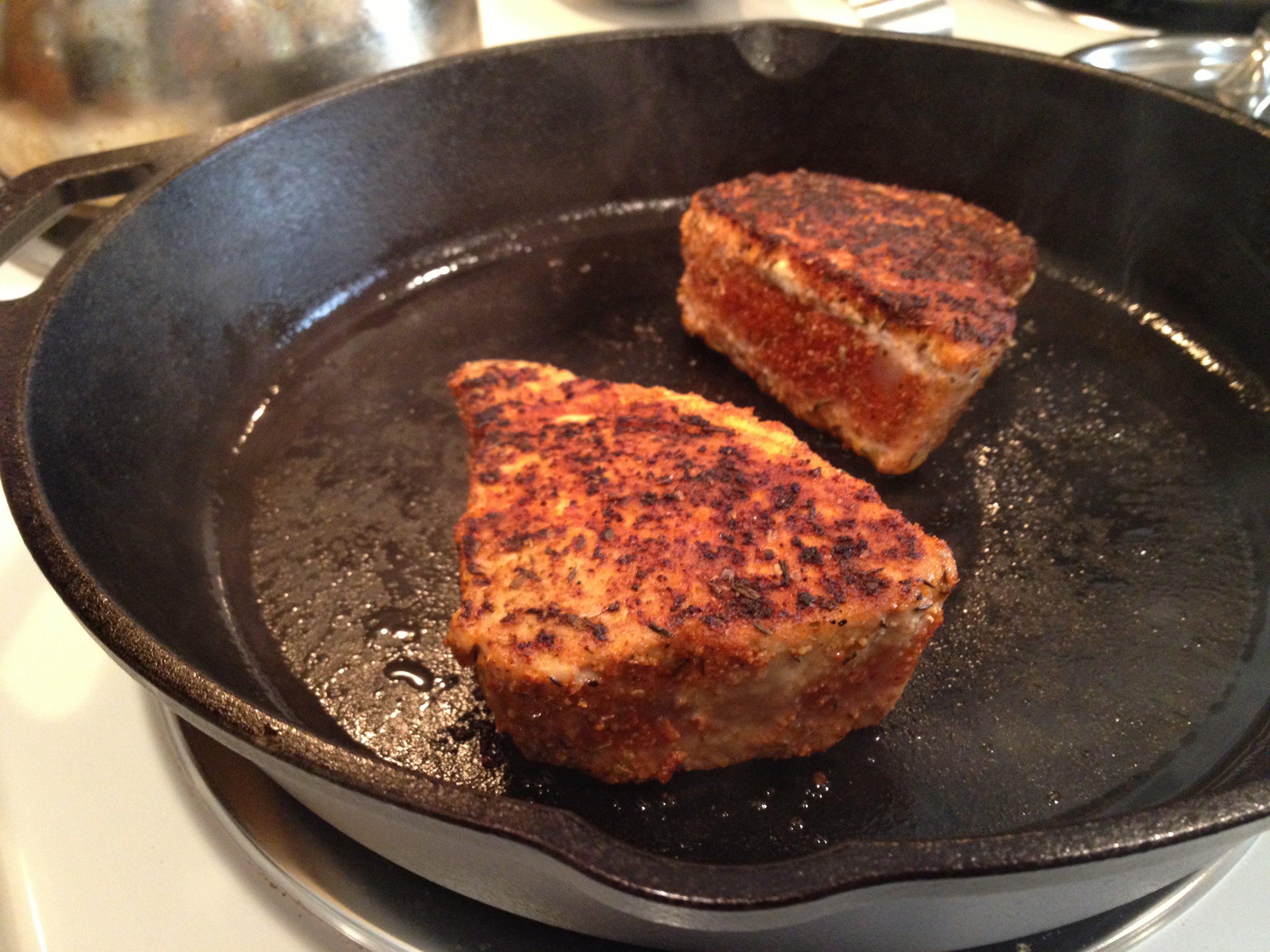 Weeknight dinners are often the last thing you want to think about after working all day. It's hard to find inspiration when all you want to do is kick back and pop a meal into the microwave. One night after a visit with his mom, Elliott returned home with a package of Tagliatelle, a beautiful piece of fresh albacore, and the recipe for our dinner that night. It was easy to see where Elliott learned some of his cooking chops, since this pasta was a breath of fresh air in our midweek slump. Ingredients: Packaged pasta (we usually use Tagliatelle for this recipe) Fresh albacore (or canned tuna if you need a super quick meal) Fish rub (optional) 1/4 cup fresh lemon juice 1/2 tsp. lemon zest 3 tbsp. capers 1/2 cup fresh parsley, roughly chopped Handful parmesan cheese High quality olive oil Salt and pepper While the pasta is cooking, rub the tuna with spice rub (or just salt and pepper) and sear in a hot cast iron skillet on medium-high. Nothing beats cast iron for searing - we use a 13" Lodge skillet that works perfectly! It came pre-seasoned, but it has continued to improve with age. For this recipe we like to cook the fish through, but you can leave it pink if you prefer. Once the pasta is done and the fish has rested a bit, toss the ingredients together and adjust the lemon juice, if needed. Use a generous portion of your best olive oil as this absorbs all of the flavor from the lemon zest, capers, salt and pepper, and adds its own layer of complexity. The flavors are focused and delicious!