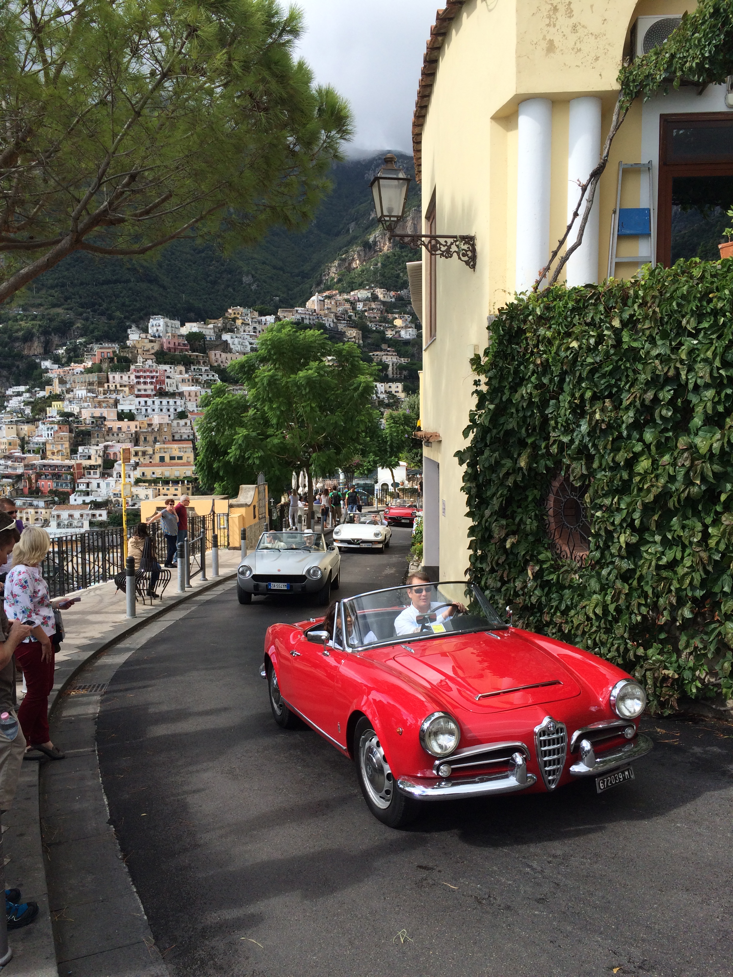 For our last day in Positano, the skies opened up for the shots we'd been waiting for and we set off on our seemingly easy (and economical) bus transfer to the hill-town of Ravello. Since the storm had cancelled all ferry boats, we instead had to bum-rush several already full buses along with every other tourist heading out of town. The line of vintage Alfa Romeos pictured below seemed to taunt us with their freedom!