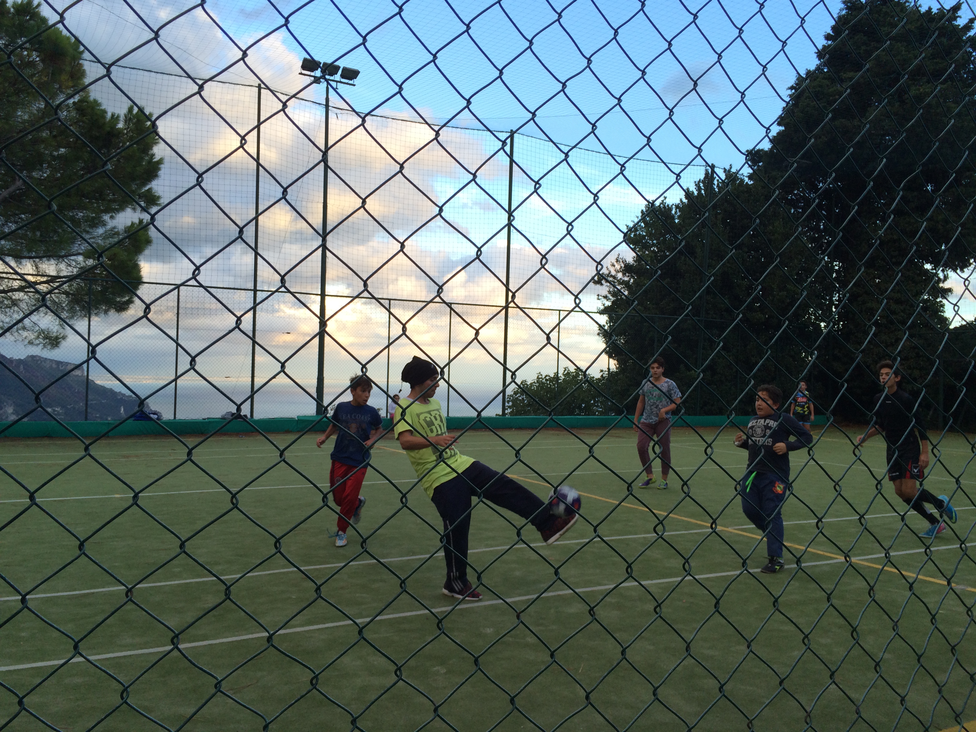 Once we arrived in Ravello, we were treated to one breathtaking view after another. Though this view is from Villa Rufolo, our balcony view at our small (and cheap!) hotel, Auditorium Rooms, was just as stunning. After dinner, we stumbled upon this pick-up soccer game taking place at a local school (the players seemed totally oblivious to the incredible sunset taking place behind them), which has to be on one of the most picturesque fields in the world.