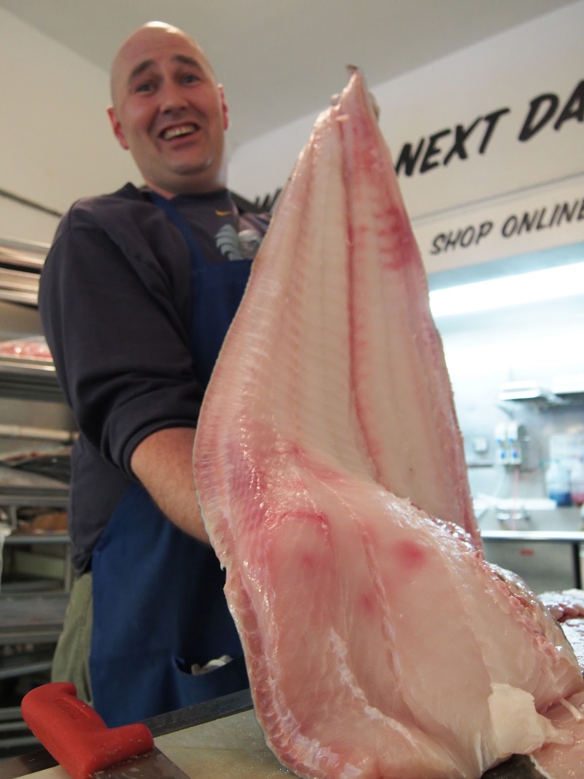 On the fish market side, we've sampled everything from Chinook to Ono. There's always someone like this friendly crew member available to steer us towards the freshest catch, and so far everything we've tried has been stellar. That said, you're going to pay a slight premium for the high quality, but in our opinion it's always been worth it. Plus it's a great place to hang on a rainy day, and for non-seafood lovers there's always frog legs! Check back tomorrow to see what we whip up with our piece of halibut!
